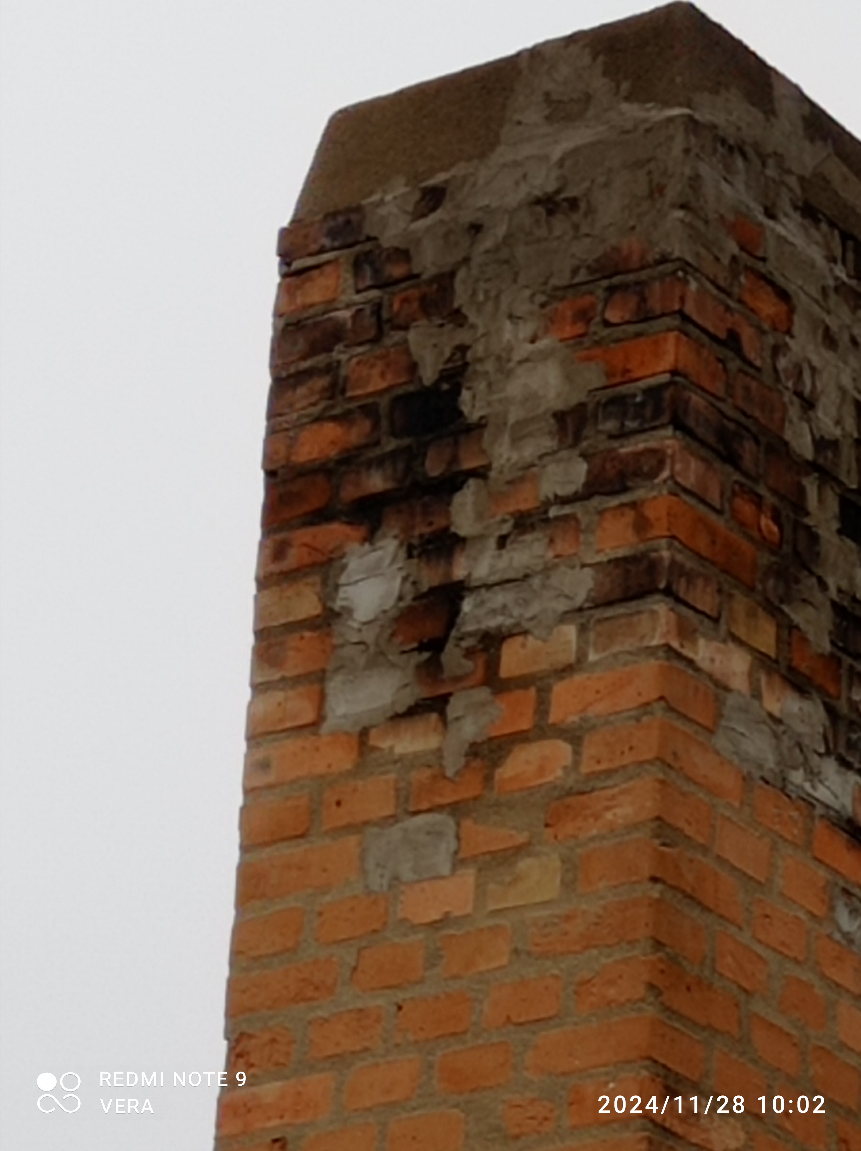 és akkor menjünk tovább, a fakopács kikezdte a kéményt, már nem először, most idén újra be lett vakolva... de a szomszéd házat mintha körbe lőtték volna..Tavaly már szóltunk a szomszédnak, de azt mondta, azt olvasta, nem kell helyre állítani, mert új lyukat fog készíteni... Igy aztán maradt minden, ezek meg bontották a hungarocellt,belülről, vakolat maradt, csak a lyuk, nálunk mint a hóesés... ahogy kinyítottam az ajtót a szél is Alex is meg a cipőnk is mindig tele volt apró hungarocell darabokkal, jött a szél, hordta minden felé...és én takarítottam... Ídén már nem bírtam tovább Apát noszogattam, szóljon már nekik, de Ő nem szeret szólni semmiért...Kint volt a gazda a teraszon szóltam neki jöjjön át... Fejét ingatta, hogy nem gondolta hogy mi igy nézzünk ki, mondtam sürgessen csináljanak valamit, itthon vagyunk, ha kell a létrát is megfogom, hogy le ne essen...Majd látszik a fotón, hogy mennyire szedték ki,és nagy harc volt, hogy kimenjen a kibontott részbe, fészkeltek volna már be a verebek...Közel 30 centis fészket vájtak ki...